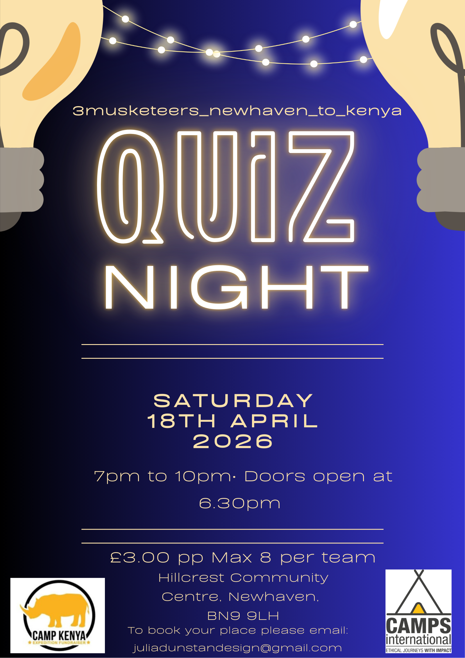 Tickets £3.00pp Max 8 people Per Team